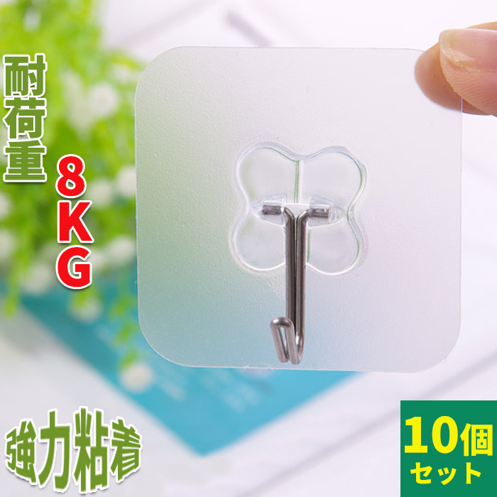 【セット購入割引あり】10個入れ 耐荷重8KG 強力粘着の壁掛けフック貼り付け跡なし ミニステンレスフック 鍵かけ 玄関 収納 インテリア 吊り下げ ハンガー