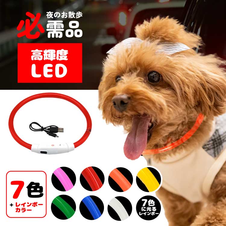 商品名:首輪 光る 犬 散歩 LED ライト USB 充電式 夜 光る首輪 ペット