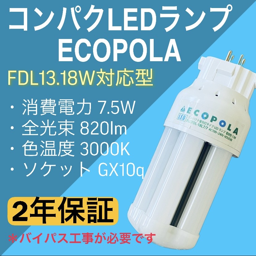 コンパクト LED ランプ 蛍光灯 FDL13W FDL18W ELCFDL-18N7/7 店舗 事務所 公共施設(バイパス工事が必要です)