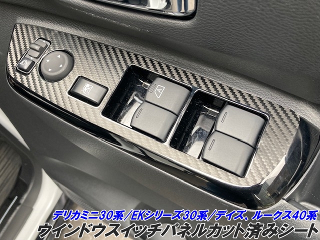 デリカミニ30系/ルークス40系/デイズ40系/EKシリーズ30系 ウインドウスイッチパネルカット済シート カーボン柄カラー選択 アクセサリー 内装カスタムパーツ