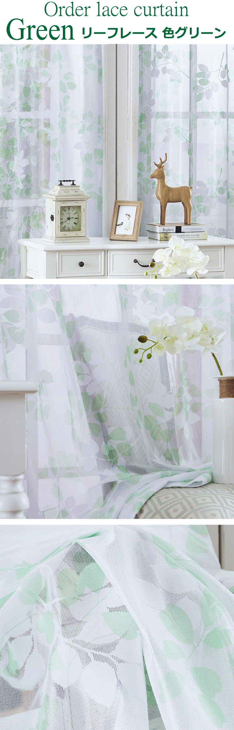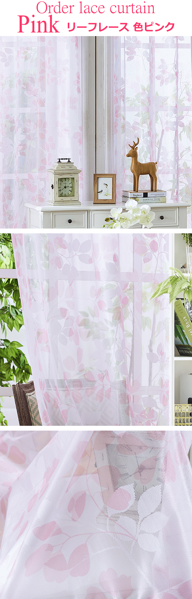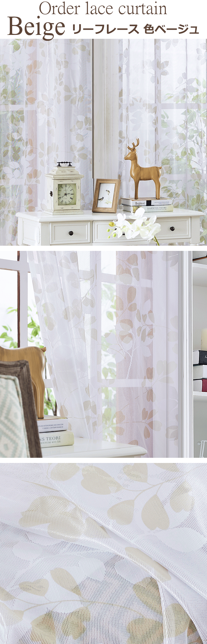 レースカーテン ミラー 昼間外からみえにくい リーフ柄レースカーテン 丈108cm〜丈148cm オーダーカーテン curtain