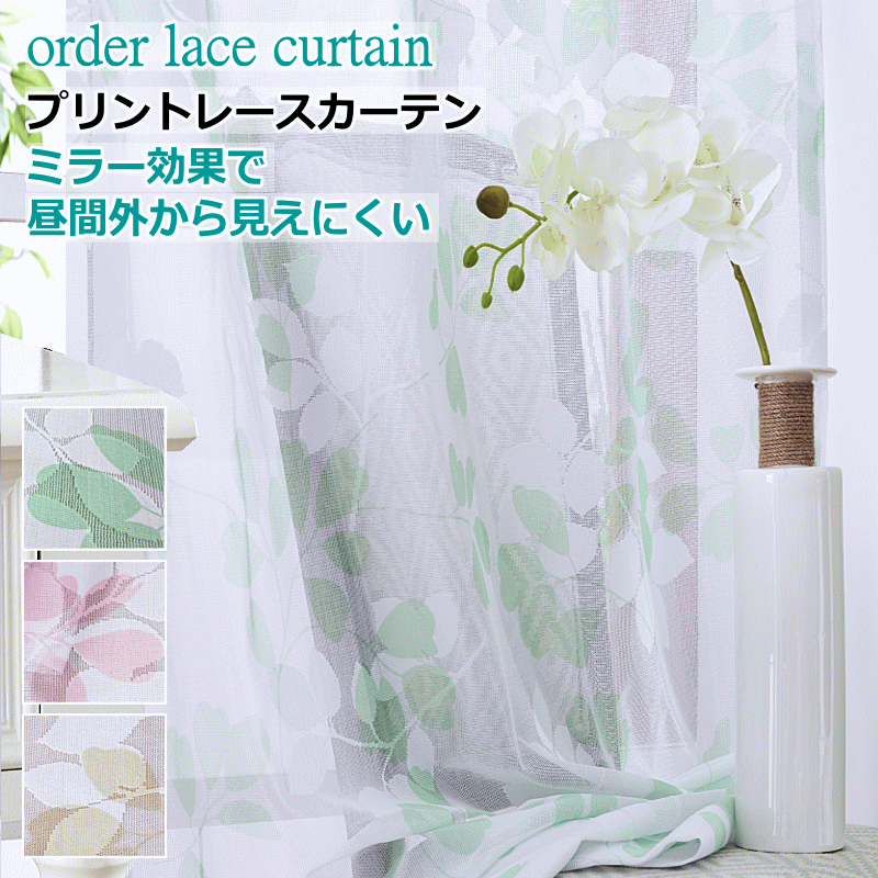 レースカーテン ミラー 昼間外からみえにくい リーフ柄レースカーテン 丈78cm〜丈98cm オーダーカーテン curtain
