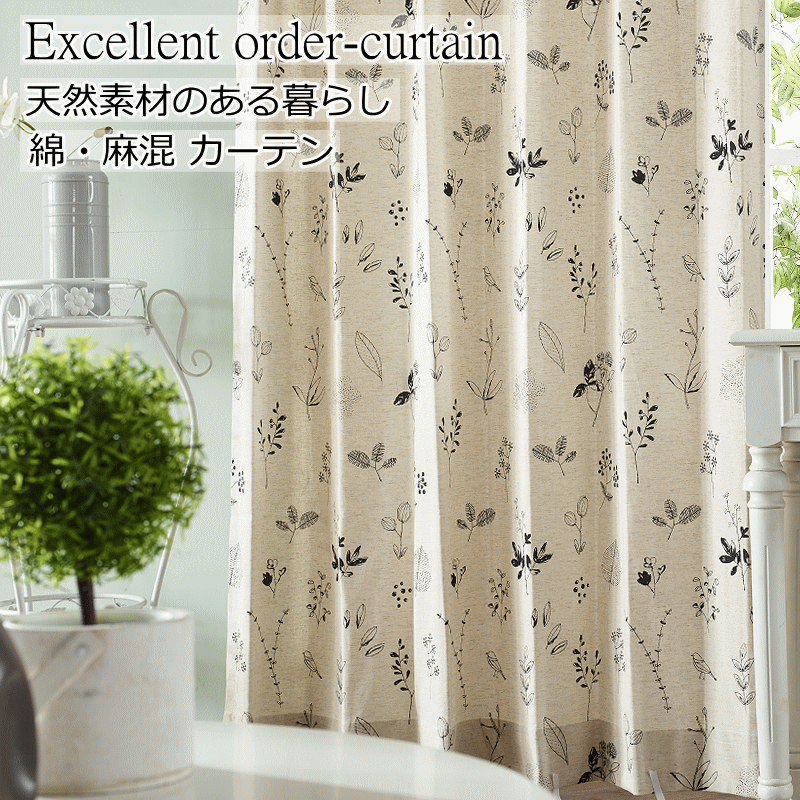 カーテン 北欧 綿と麻混 コットンリネン 丈150cm 丈160cm 丈170cm 丈180cm 丈185cm 丈190cm オーダーカーテン ドレープカーテン curtain