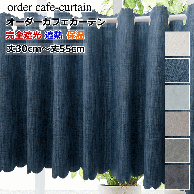 オーダーカフェカーテン 完全遮光 遮熱 保温 防音 デニムス/オックス/パーフェクト 製品幅140cmx丈30cm 丈35cm 丈40cm 丈45cm 丈50cm 丈55cm cafe-curtain