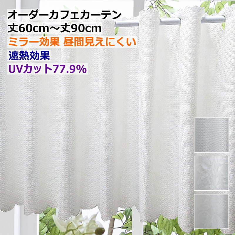 オーダーカフェカーテン 遮熱効果 UVカット カフェレースカーテン 製品幅140cm(適応窓幅70cm〜幅100cm)丈60cm 丈65cm 丈70cm 丈75cm 丈80cm 丈85cm 丈90cm