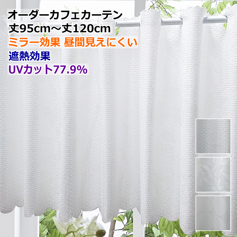 オーダーカフェカーテン 遮熱効果 UVカット カフェレースカーテン 製品幅140cm(適応窓幅70cm〜幅100cm)丈95cm 丈100cm 丈105cm 丈110cm 丈115cm 丈120cm