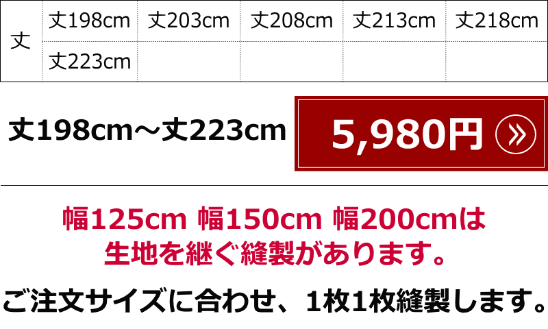 幅125cm/幅150cm/幅200cmは