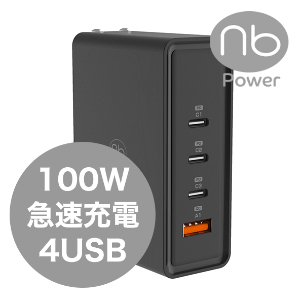 | 出力 | 単ポート利用時 USB-C1:(PPS)3.3V-20V /(PD3.0)5,9,12,15,20V (最大100W) USB-C2:(PPS)3.3V-20V /(PD3.0)5,9,12,15,20V (最大100W) USB-C3:(PPS)3.3V-20V /(PD3.0)5,9,12,15,20V (最大100W) USB-A:(QC3.0)4.5,5,9,12,20V (最大60W)