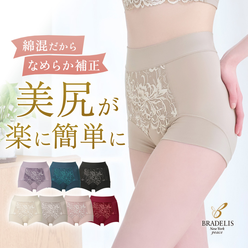おへそが隠れるぐらいのはきこみ丈で、ウエストからヒップ下まですっぽり包み込む一分丈補正ショーツです。太ももまで流れたお肉を綺麗に包み込み、ヒップと太ももの境目を作りヒップラインを美しく演出します。