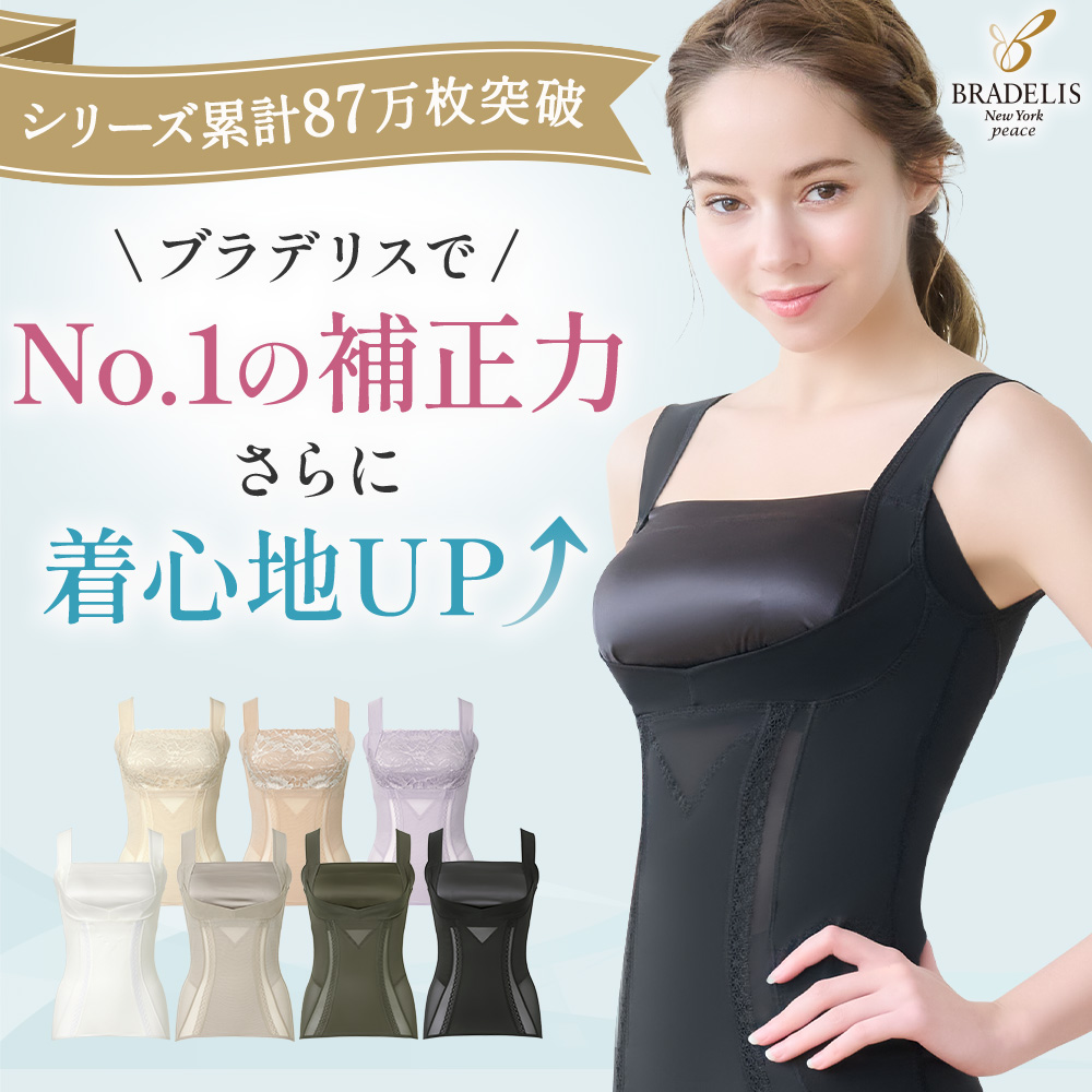 ブラデリス製品のなかでも高い補整力でボディメイクするバストアップシェイパーシリーズ。立体裁断のオリジナルパターンで締め付け過ぎない着心地と補整機能を両立したノンワイヤー補整ブラキャミです。伸びの良いパワーネット素材の身生地で動きやすく、長時間着用しても窮屈感なくボディシェイプできます。
