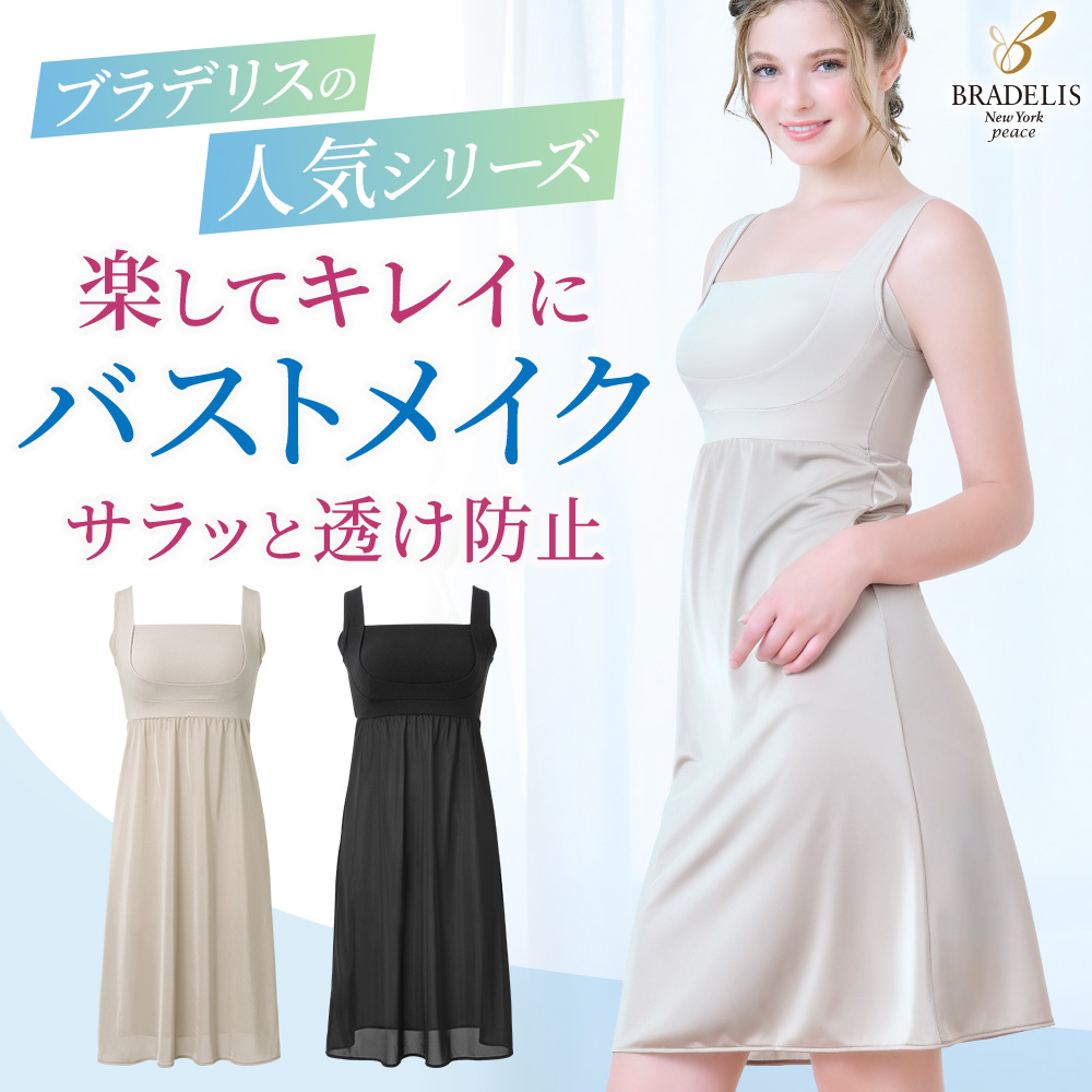 すっきり着られる、アウターライクでシンプルなデザイン。カップ部分は切り替えをなくしたストレートラインのデザインにリニューアルしました。ブラアンダーで通気性があるトリコット素材に切り替えており、蒸れにくく快適な着心地。スカートやワンピース等のアウターから裾が出にくい丈設定。静電気が起こりにくい加工を施しているので、アウターのまとわりつきを軽減します。