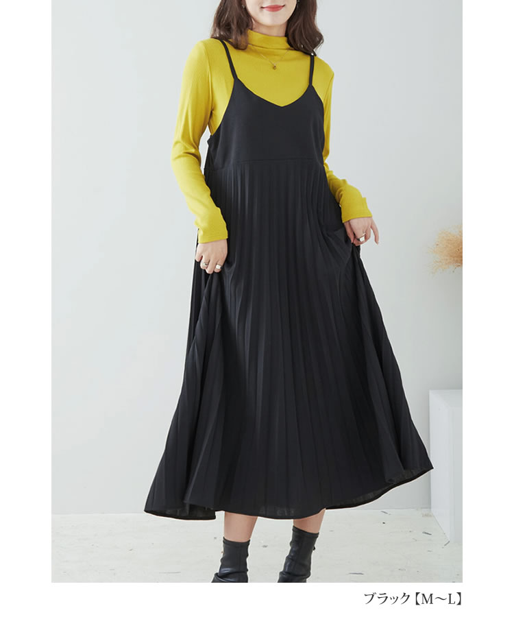 レディース キャミワンピース プリーツ キャミワンピ フレア 美シルエット ロング ストレッチ 上品 ストレッチ ゆったり 大人 爆買
