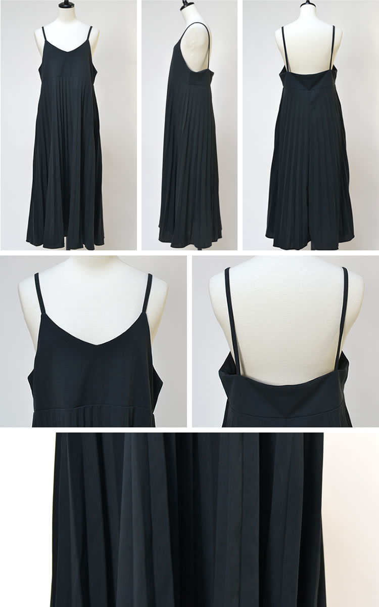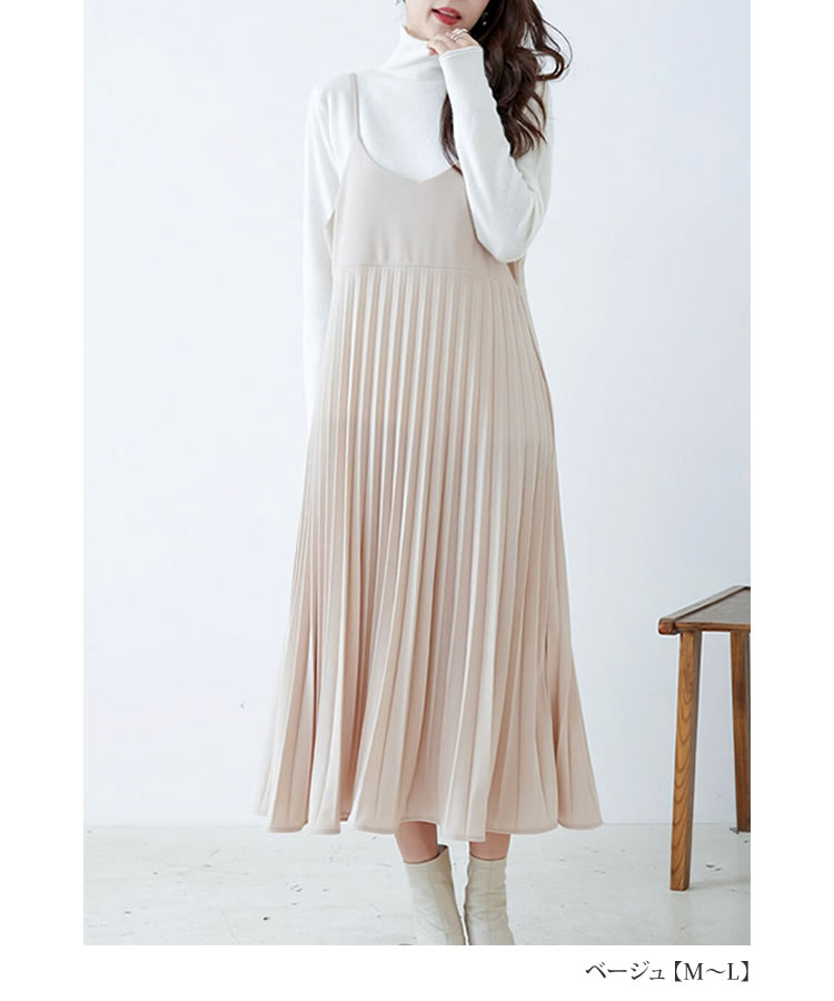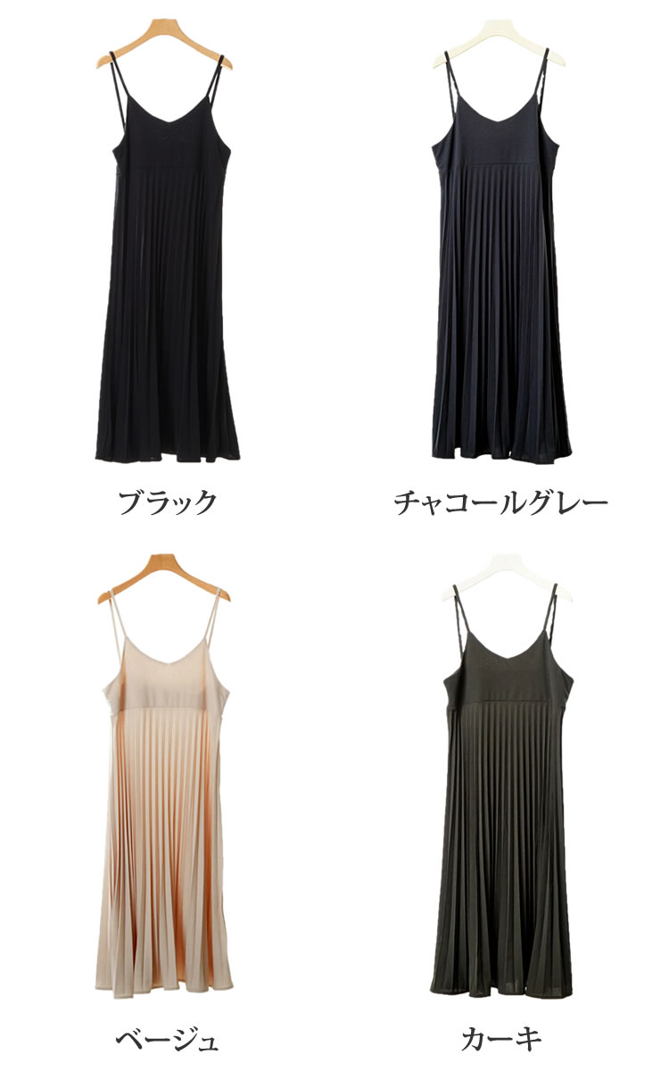 レディース キャミワンピース プリーツ キャミワンピ フレア ロング ストレッチ ノースリーブ Vネック Aライン 春 夏 秋 冬 レイヤード 定番