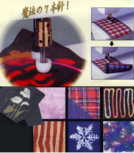 例えば生地の上に毛糸を乗せ7本の針でたたく。