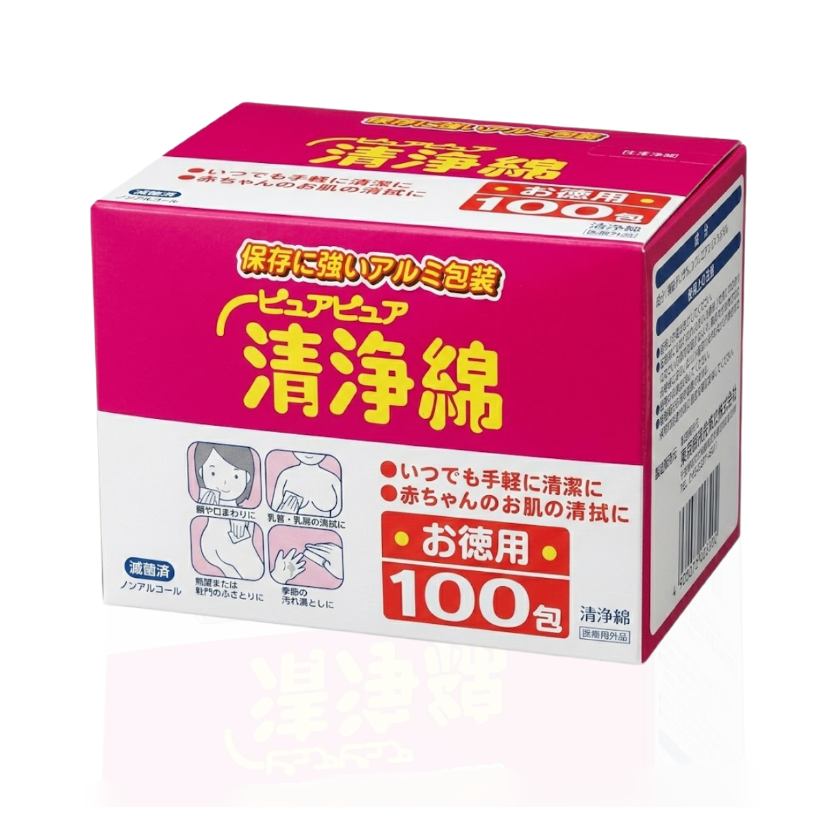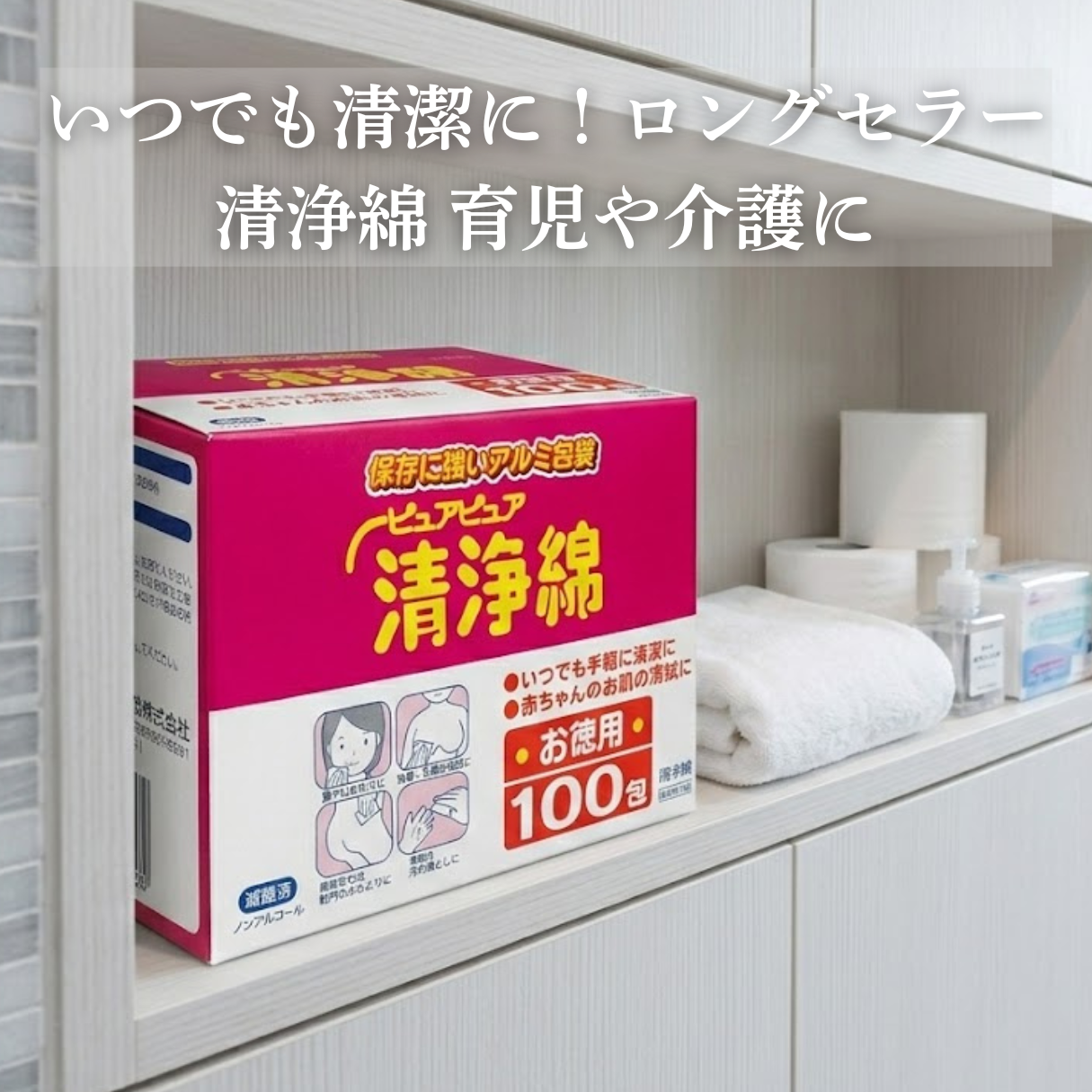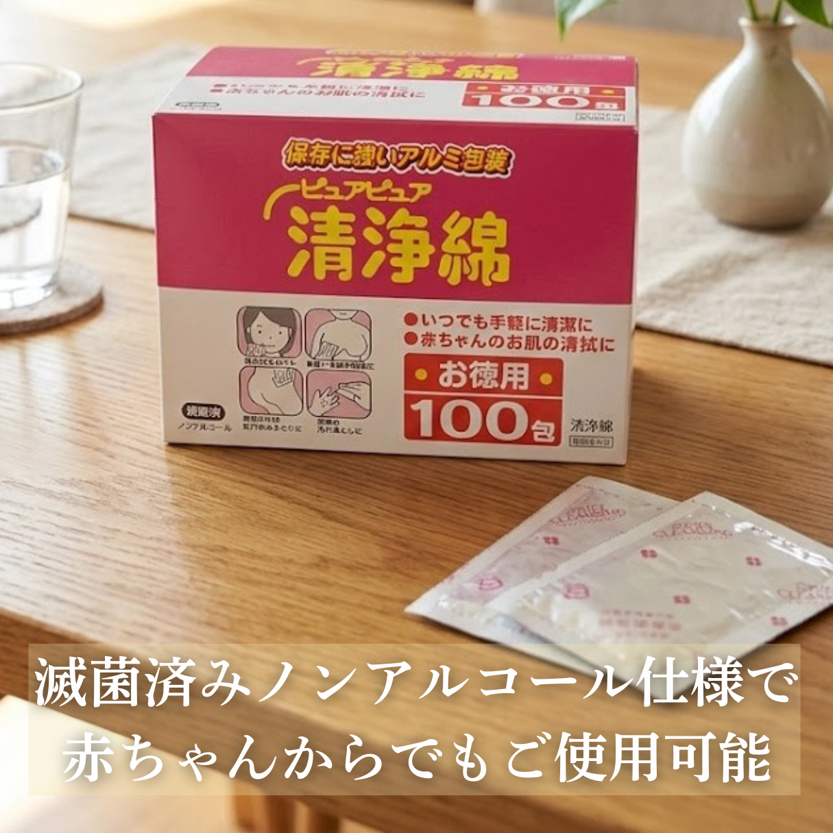 清浄綿 ピュアピュア お徳用 100包入 医薬部外品 赤ちゃん 介護 衛生管理 口腔 局部 肛門 清拭 洗浄綿 高圧蒸気滅菌処理 個包装 業務用 店 薬局 ドラッグストア