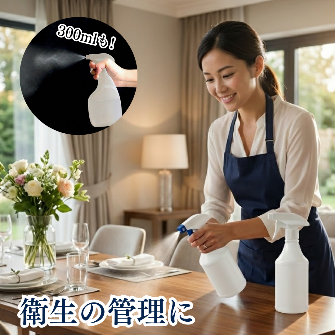 アルコール製剤、除菌洗浄剤などの詰め替えに。霧状に出るスプレー容器です。