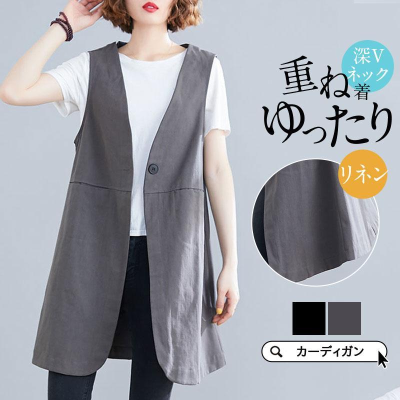 ベスト レディース ロングベスト 春 夏 薄手 カーディガン リネン ロングジレ ジレ ノースリーブ ロングジレ トレンチベスト 綿麻 ロングベスト