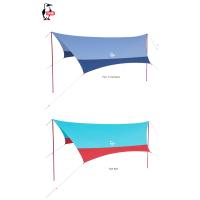 立てやすく、3〜4人のファミリーキャンプにぴったりのヘキサタープです。2本のポールをメインに、その他の角はガイライン(張り綱)でペグダウンするシンプルな構造。すばやく設営することができ高さ調節も自在。開放感をたっぷりと味わえるので、ビギナーからベテランキャンパーまで幅広く人気の形です。テントとタープを連結したり、工夫次第で多彩なセッティングが可能。ポールとペグがセットになっているのですぐにお使いいただけます。