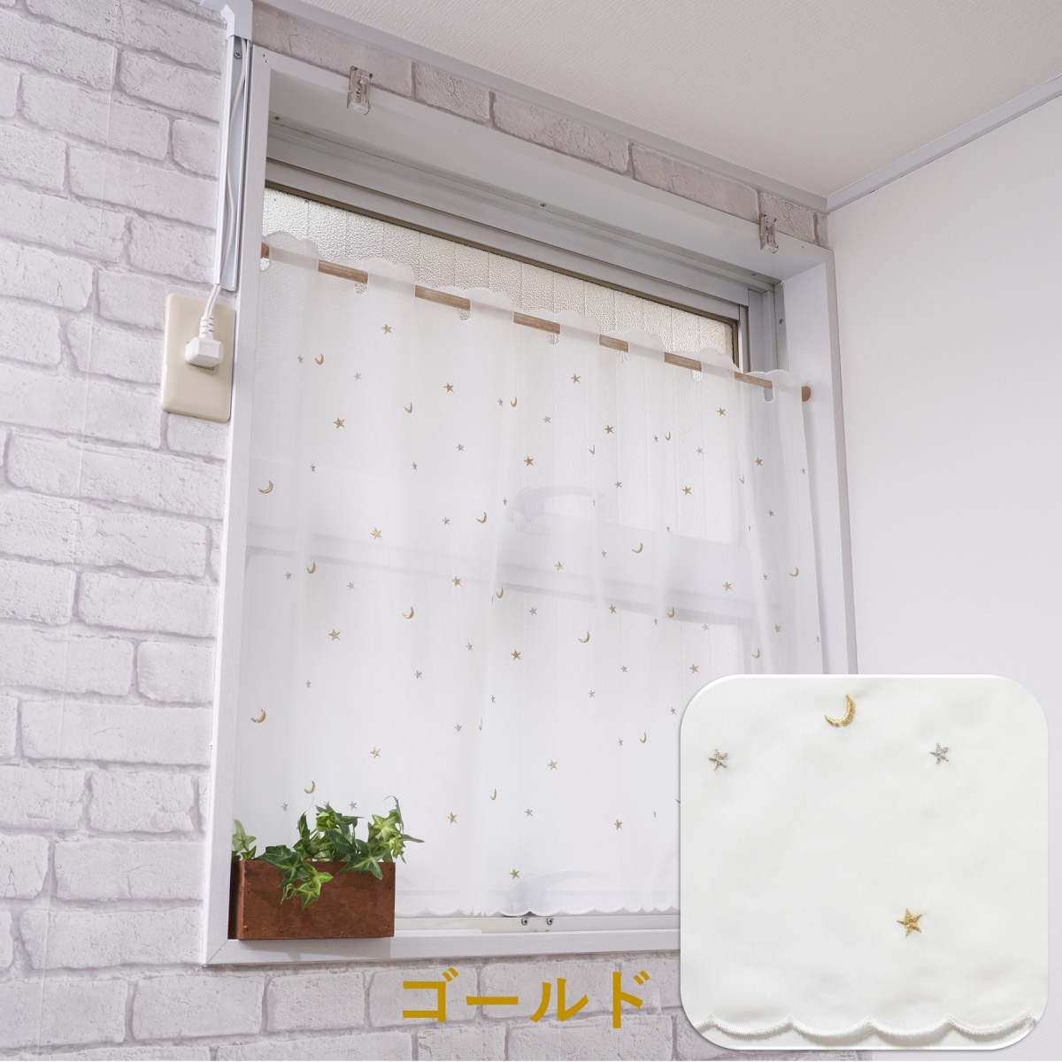 カフェカーテン 北欧 おしゃれ 小窓 安い UV レース ロング 幅100 丈45 70 90cm 刺繍 爆買