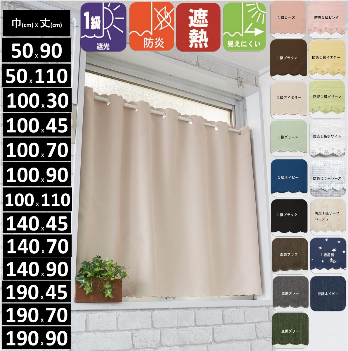 ◆製品サイズ 幅 50cm丈 70,90,110,130cm ◆適応窓 幅25~40cm