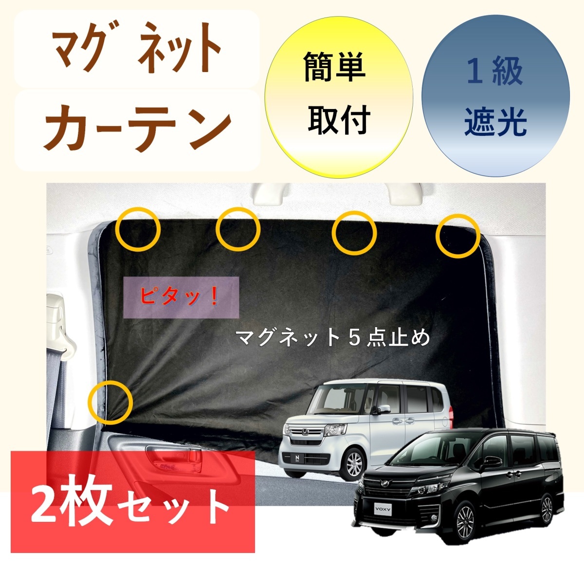 車用カーテン マグネット 磁石 遮光 1級 車中泊 簡単取付け 70x52 or 80x52cm 2枚入