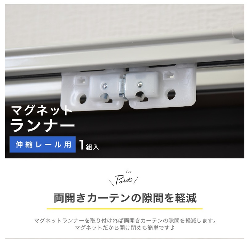 ◆カーテンレール用 両開きカーテンの隙間を防ぐ!