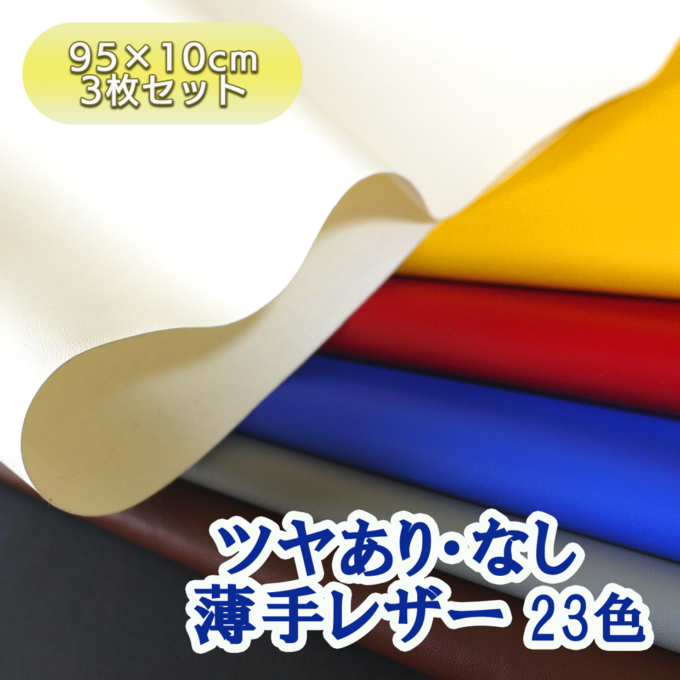 【95×10cmカット生地/お好きな色3枚組】合皮レザー生地 薄手 ツヤり・なし 全23色 [CAPs-C10-3s]
