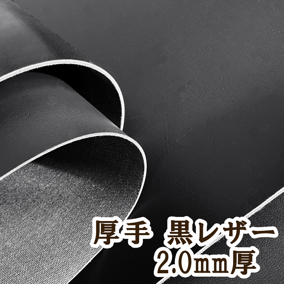 【92×50cmカット生地】厚手 合皮レザー生地【黒 2.0mm厚】 [DT-20-C50]