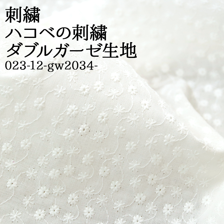 ダブルガーゼにハコベの花のような刺繍が施された生地。可愛い小花が暖かい季節の装いにピッタリです。ふんわり柔らかで、優しい肌触りのダブルガーゼ。ブラウスやチュニックなどの服地はもちろん、ベビードレスなどのベビー用品、インテリア雑貨にもおススメ♪* made in Japan *
