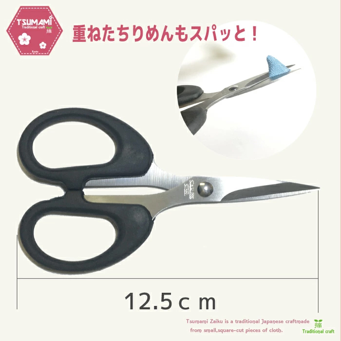 つまみ細工・ちりめん細工の作業に便利な「切り揃え用はさみ」です。