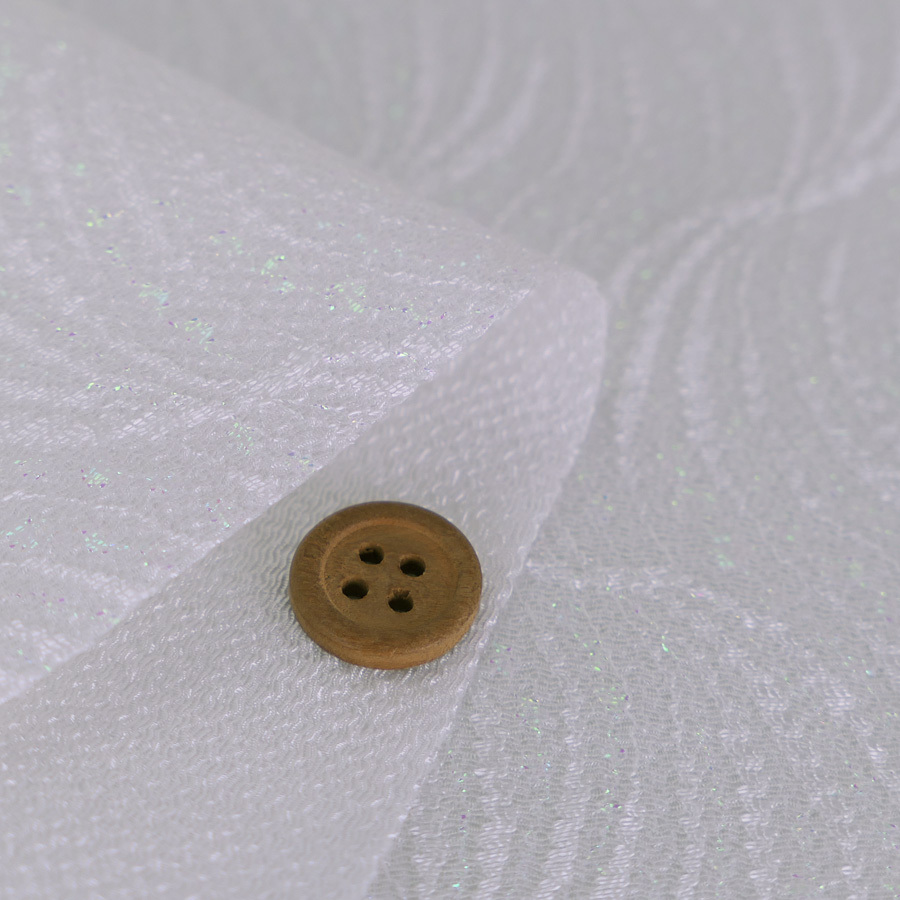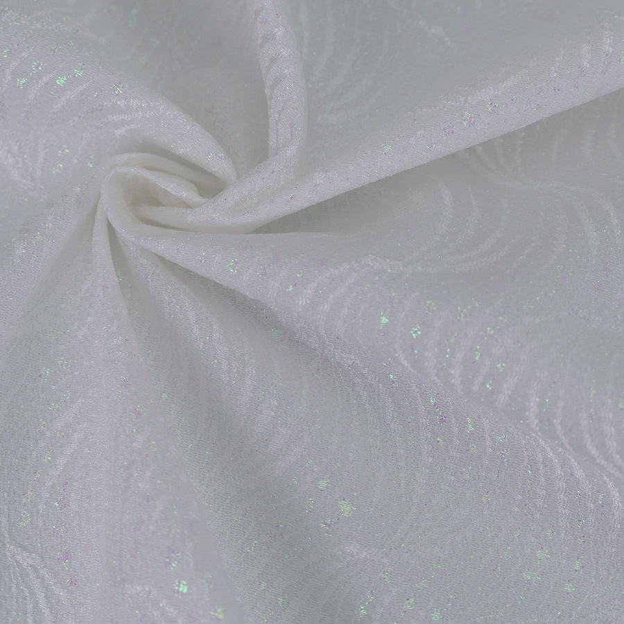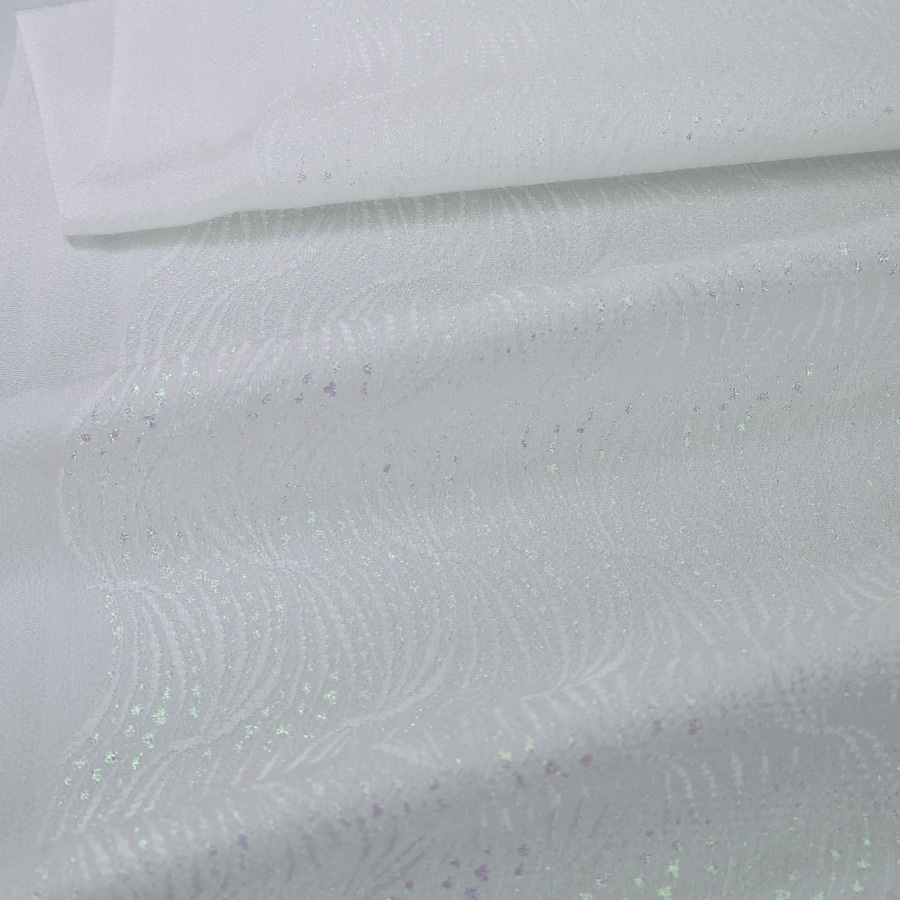 波模様と光るラメに、和と洋両方のテイストが感じられます。レース生地を重ねてある分適度なハリが感じられ、立体的にも見える斬新な素材。流れる曲線にふぞろいなラメの点描写は、太陽に反射して光る川の流れのようですね。