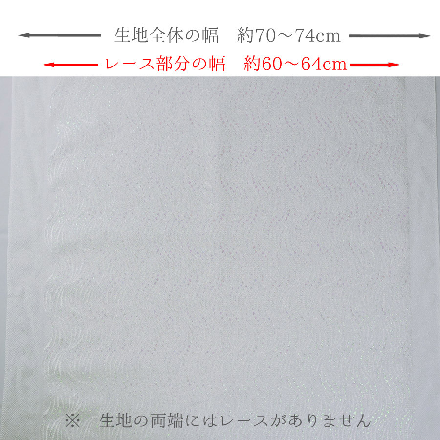 ○レース部分は生地の横幅約70〜74cmのうち60〜64cmで、生地の両端(耳側)にはレースがありません。