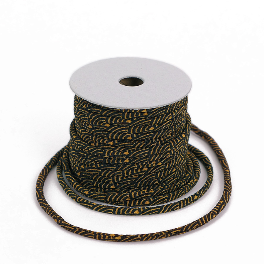 黒地に渋い金茶色の青海波模様がかっこいいちりめん紐です。以前の商品(黄色)と少し色合いが異なる新規格品です。