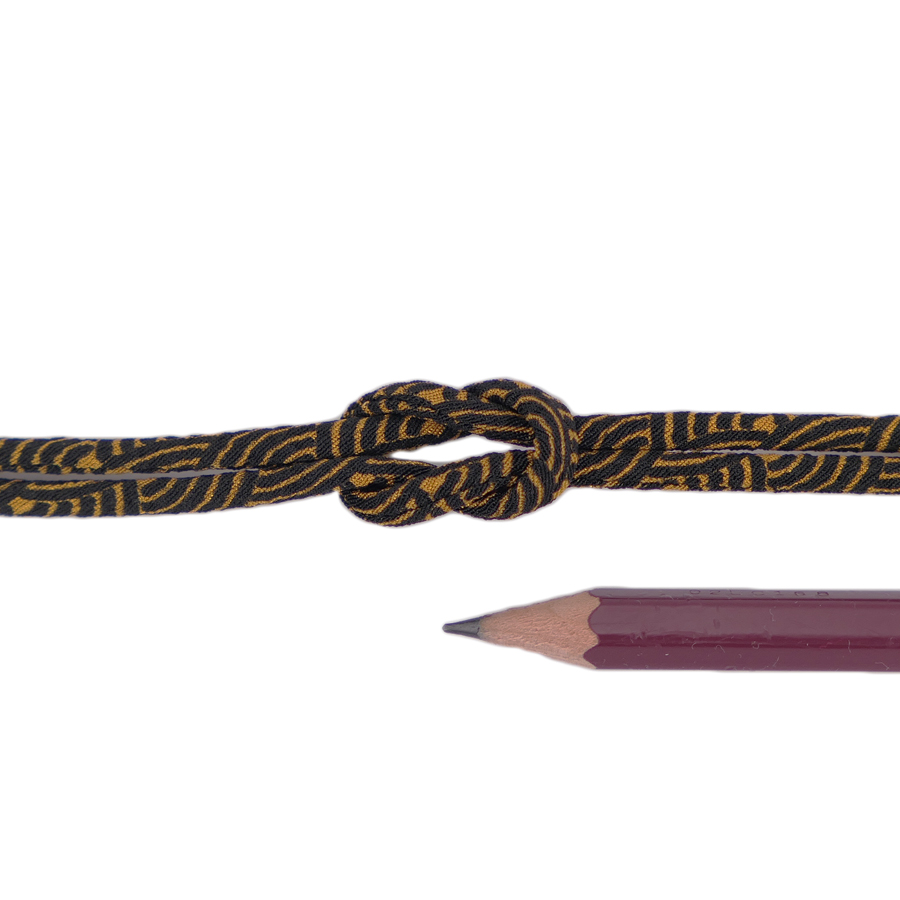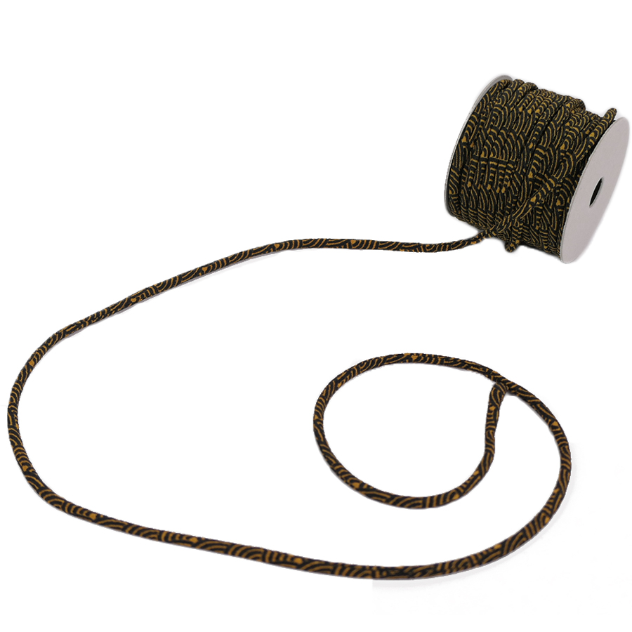 ちりめん丸ひも・小紋調柄・2ミリ(実寸約3ミリ) 青海波・金茶 10cm単位 切り売り