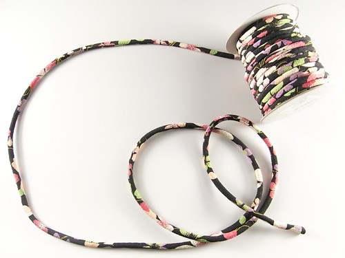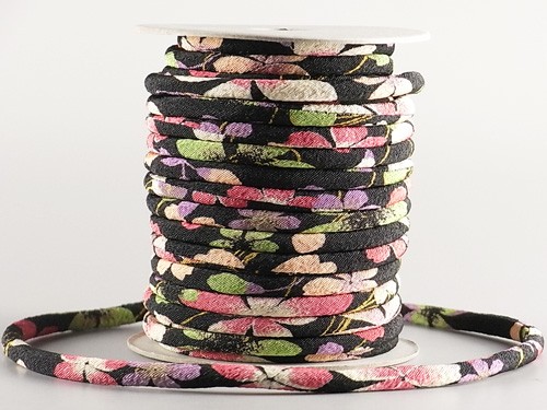 ちりめん丸ひも・柄・4ミリ(実寸約5-6ミリ) 流水桜・黒 10cm単位 切り売り