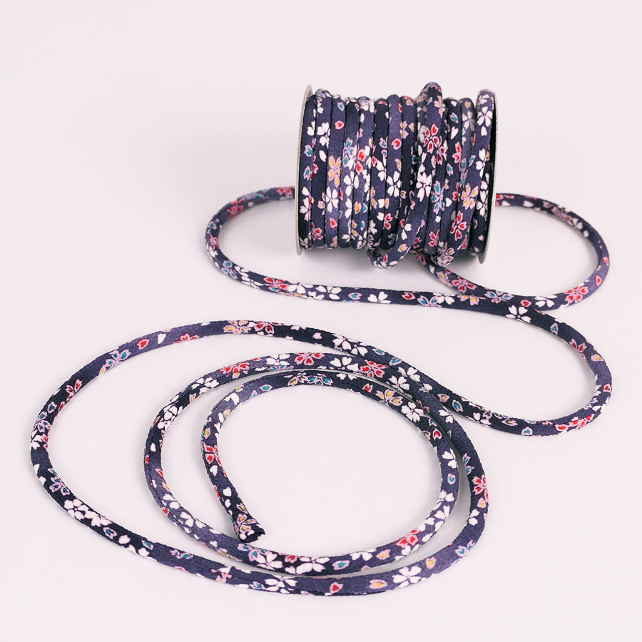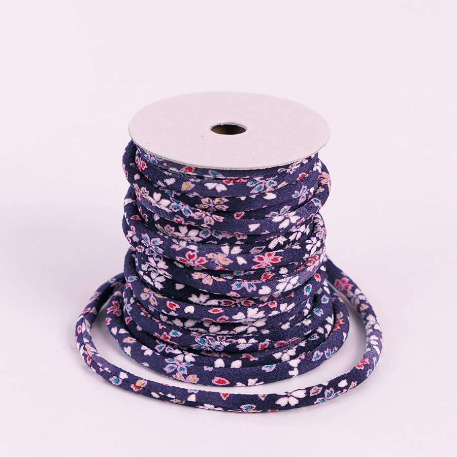 ちりめん丸ひも・柄・4ミリ(実寸約4-5ミリ)夢桜・紫 10cm単位 切り売り