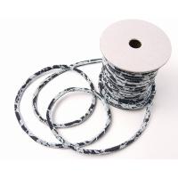 ちりめん丸ひも・4ミリ(実寸約5-6ミリ) 黒紫ちりめん&水色レース 10cm単位 切り売り