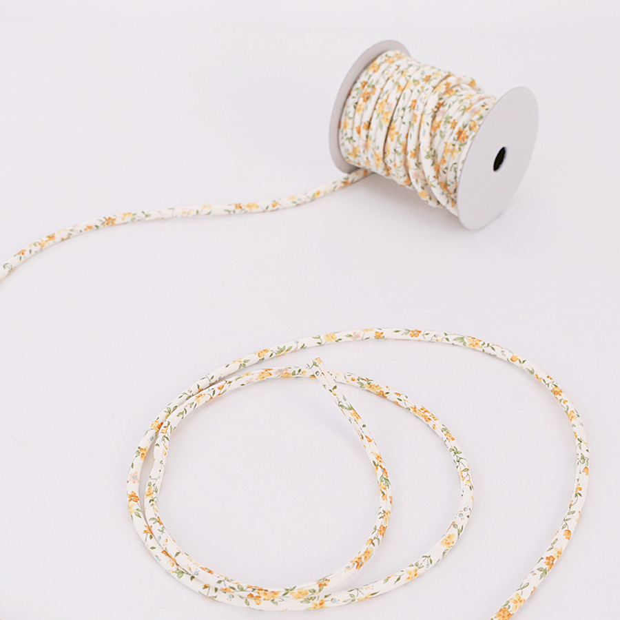 木綿の丸ひも・洋風柄・4ミリ(実寸約4-5ミリ) ガーデン・イエロー 10cm単位 切り売り