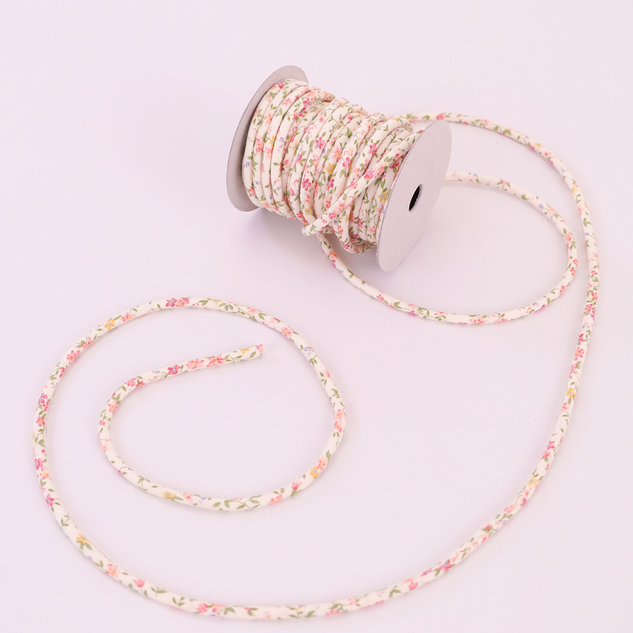 木綿の丸ひも・洋風柄・4ミリ(実寸約4-5ミリ) ガーデン・ピンク 10cm単位 切り売り