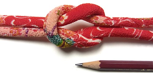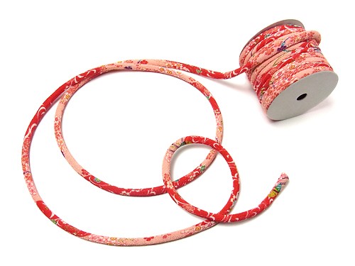 ちりめん丸ひも・柄・8ミリ(実寸約9-10ミリ) 流水桜・朱赤 10cm単位 切り売り