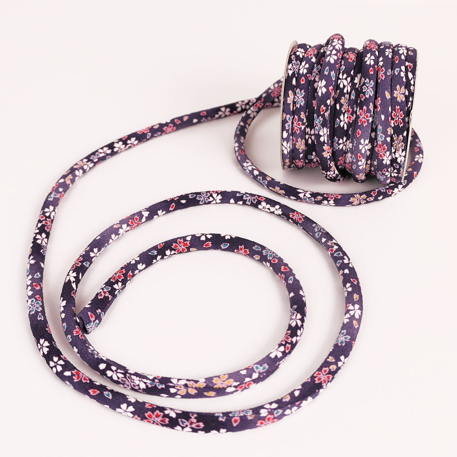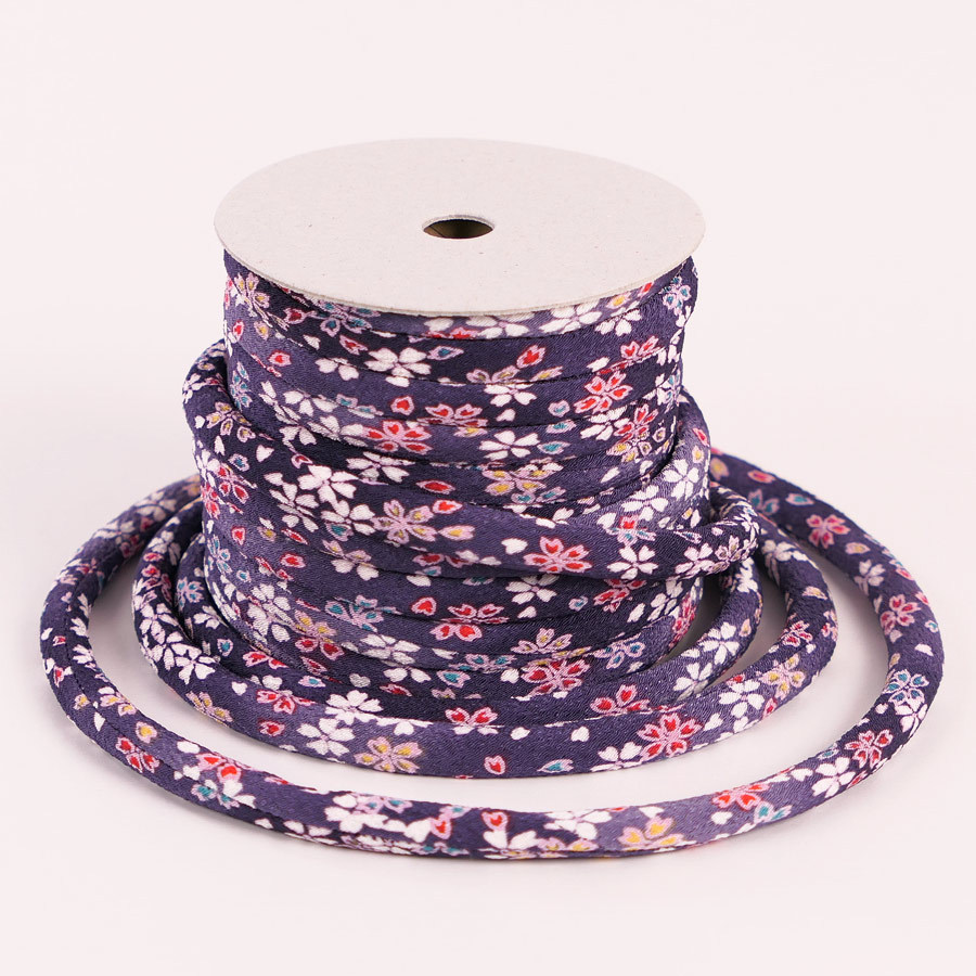 ちりめん丸ひも・柄・8ミリ(実寸約8-10ミリ)夢桜・紫 10cm単位 切り売り
