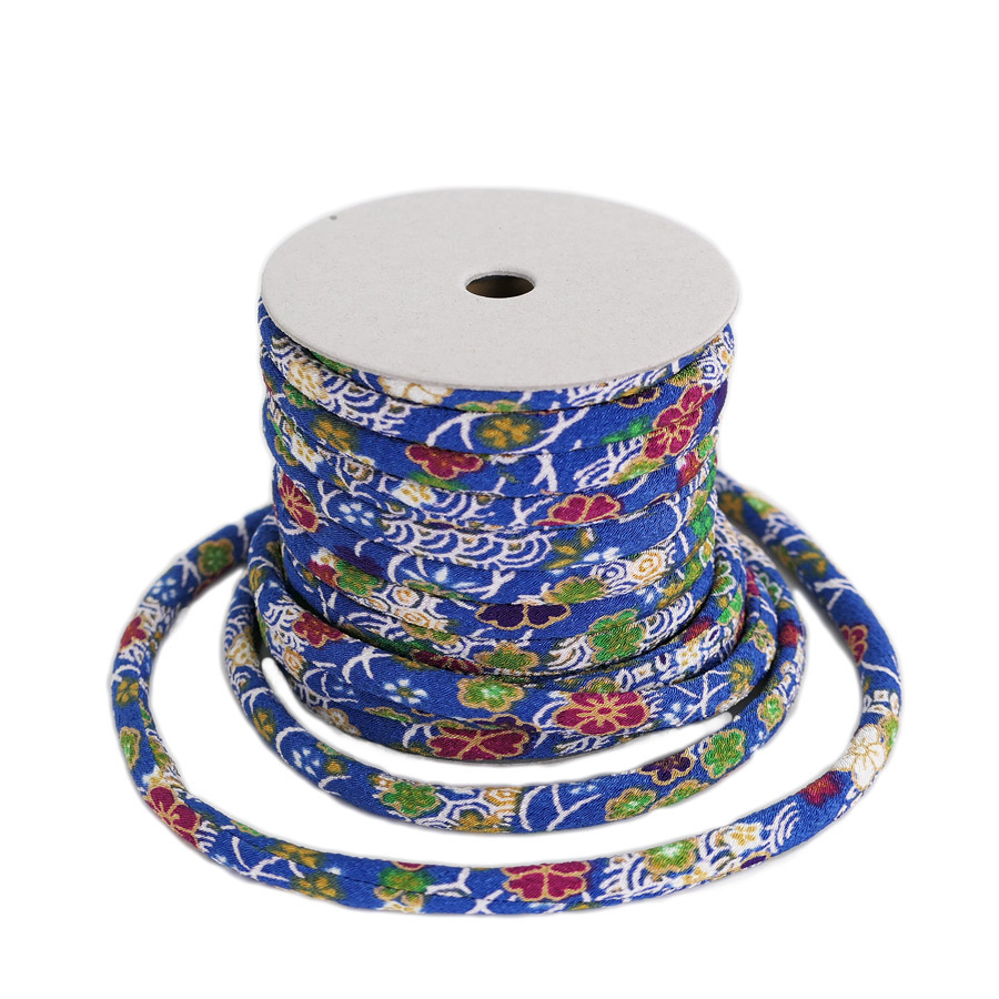 ちりめん丸ひも・柄・8ミリ(実寸約8-10ミリ)絢爛小紋・青 10cm単位 切り売り