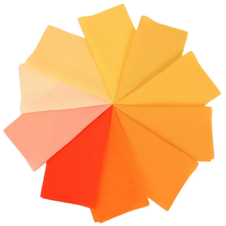 ●つまみ細工やちりめん手芸に便利!黄色・オレンジ系の無地一越ちりめんを10色セットで。