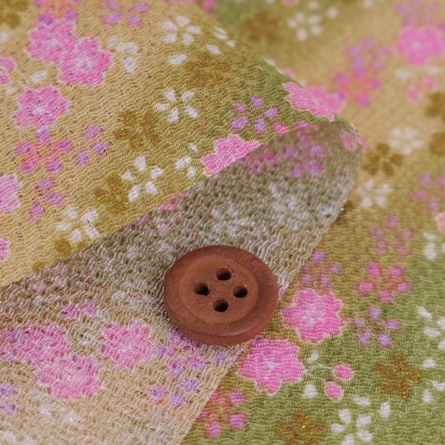 ●渋みのある黄緑のグラデーションが上品な色づかい。可愛らしいピンクの桜と、ちらっと光る金彩が、落ち着きの中にも華を感じさせます。