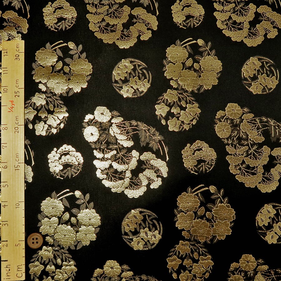 金襴生地(金らん) 金の花丸(黒) 10cm単位 切り売り