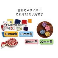 | 商品案内 | つまみ細工専用にカットされた一越ちりめん生地。16mm角の生地が30枚入っています。 ご購入時の色選択は、上段の色名を選んでください。弊店の一越ちりめんと同じ色名です。 これがあれば、下準備なしでつまみ細工を始められます!お好きな色を選んでつまみ細工を楽しんでください。 ●約16×16ミリが30枚入り ●21色からお選びください。上段の色名を選んでください。 ■素材:レーヨン100% |