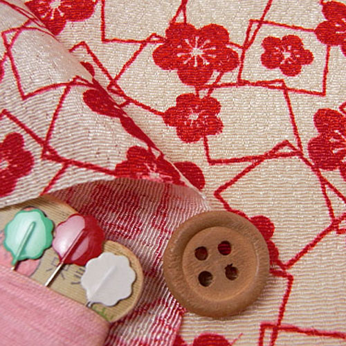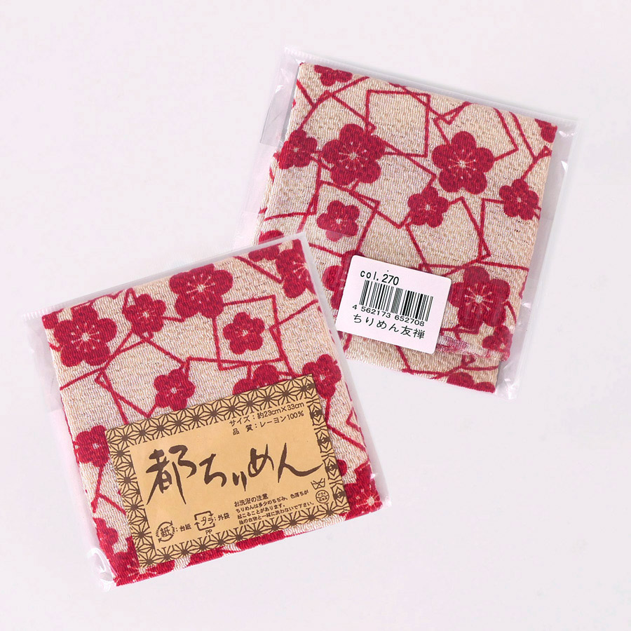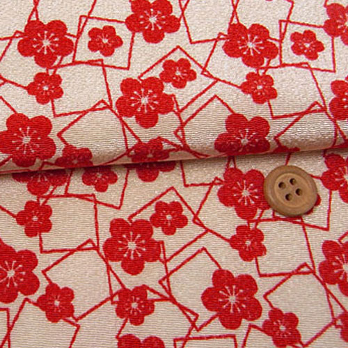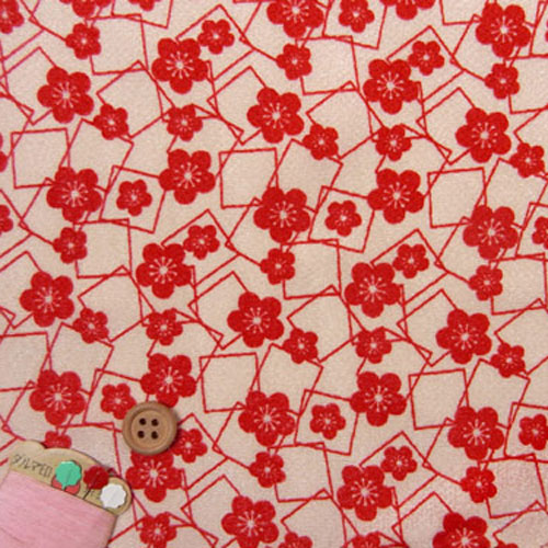 ちりめんカットクロス・梅と四角(赤) 23×33cm