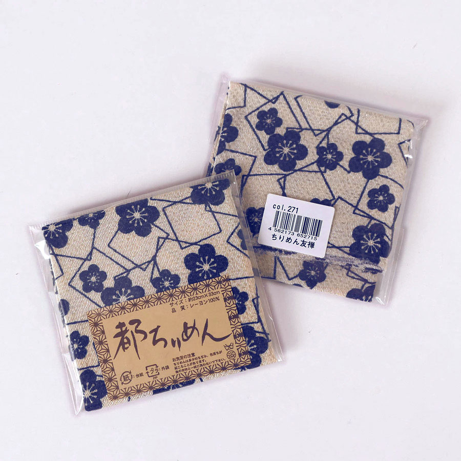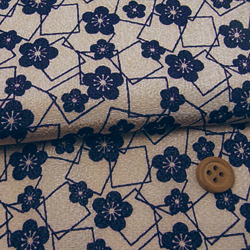 ちりめんカットクロス・梅と四角(濃紺) 23×33cm