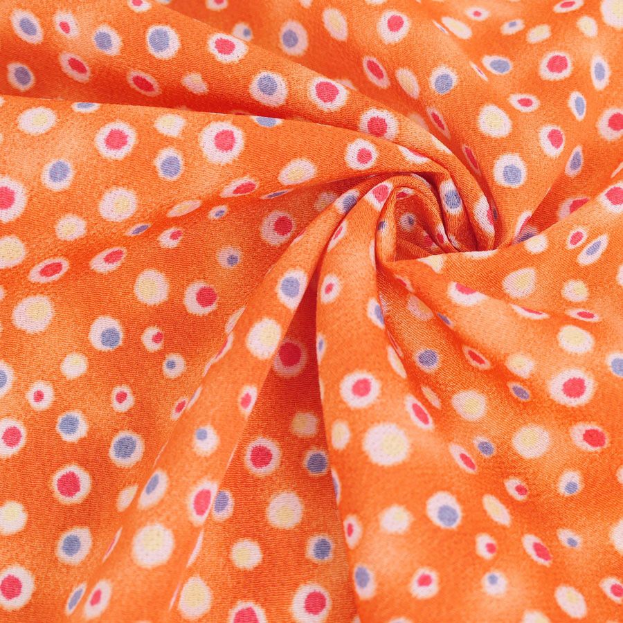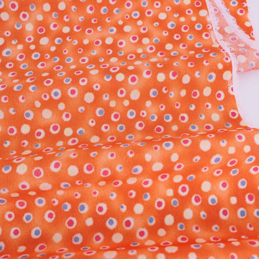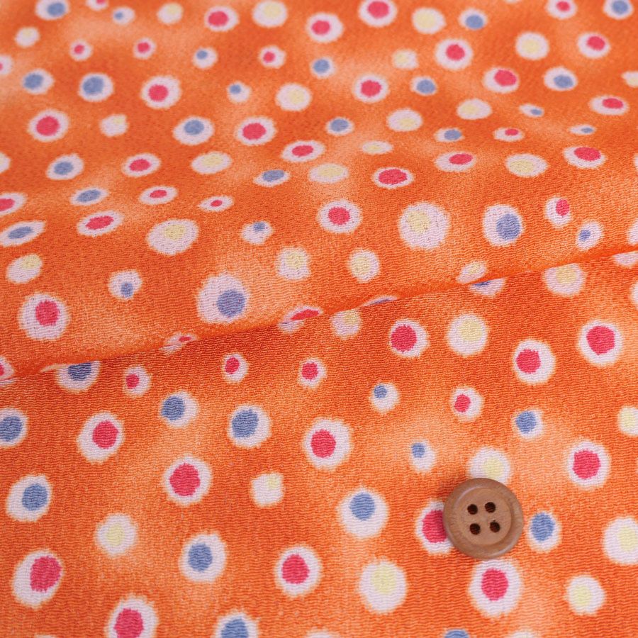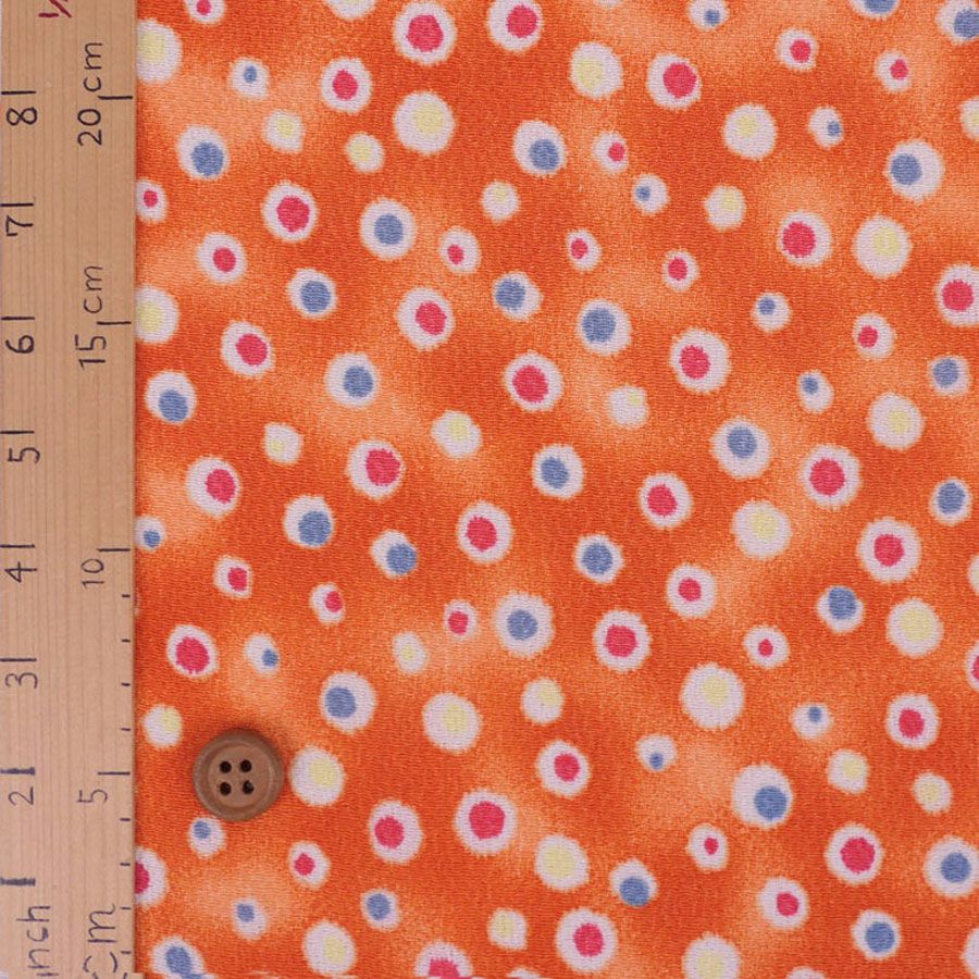 ●ぼかし染めのオレンジ地に散らされた水玉がカラフル。ハロウィーンの飾りにも良さそうです。