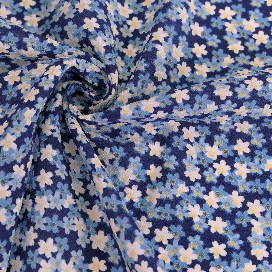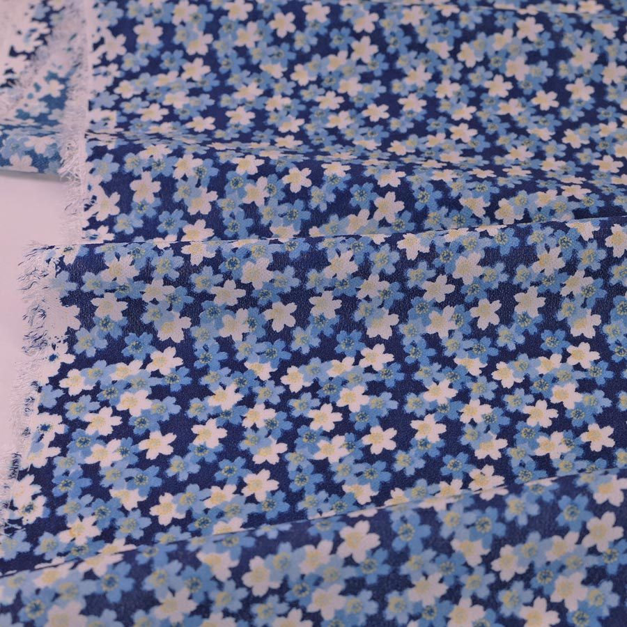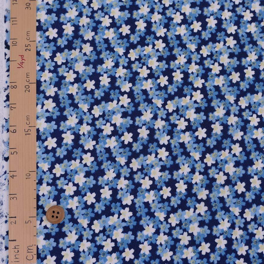一越ちりめん生地 桜舞(紺色) 10cm単位 切り売り